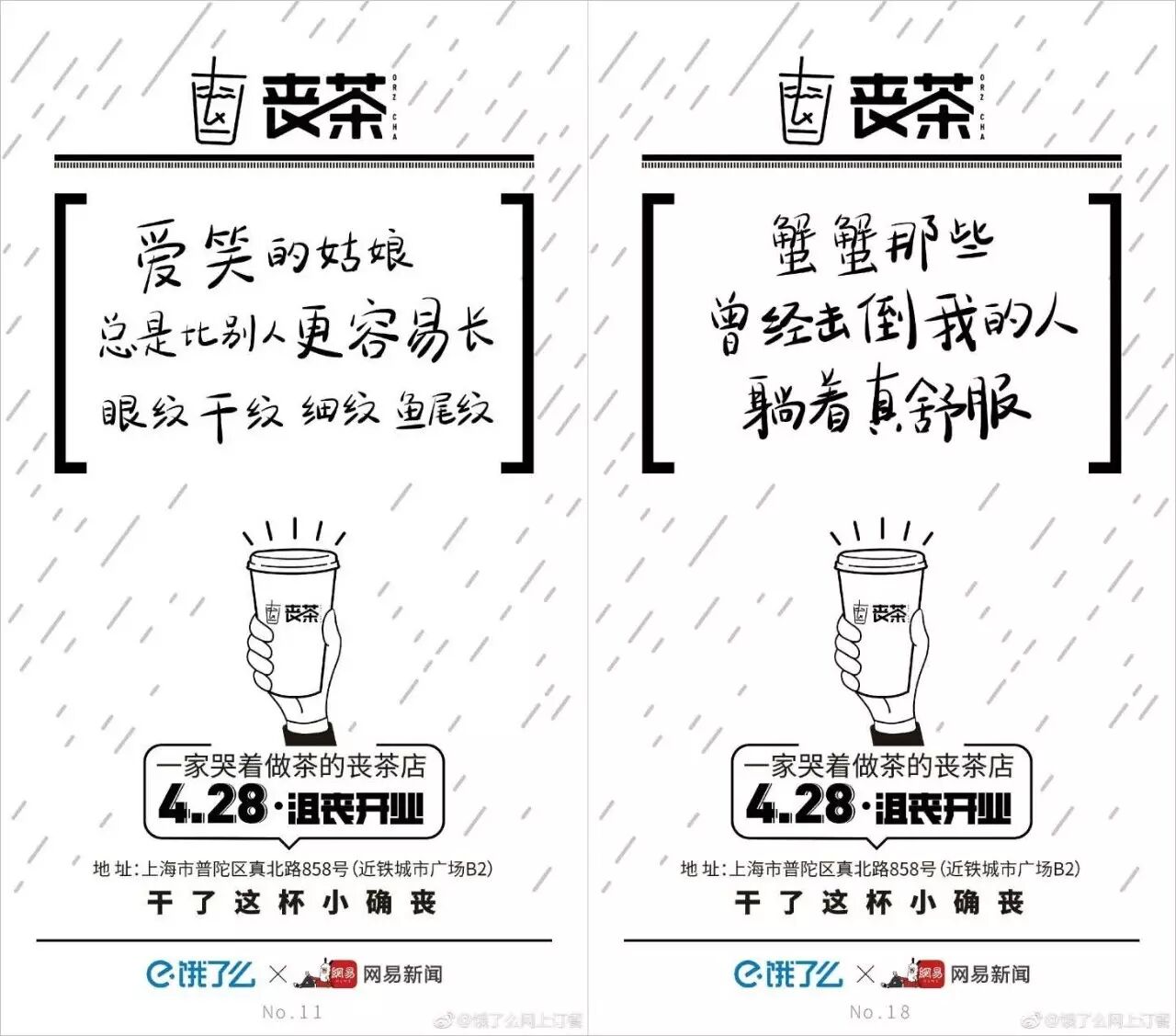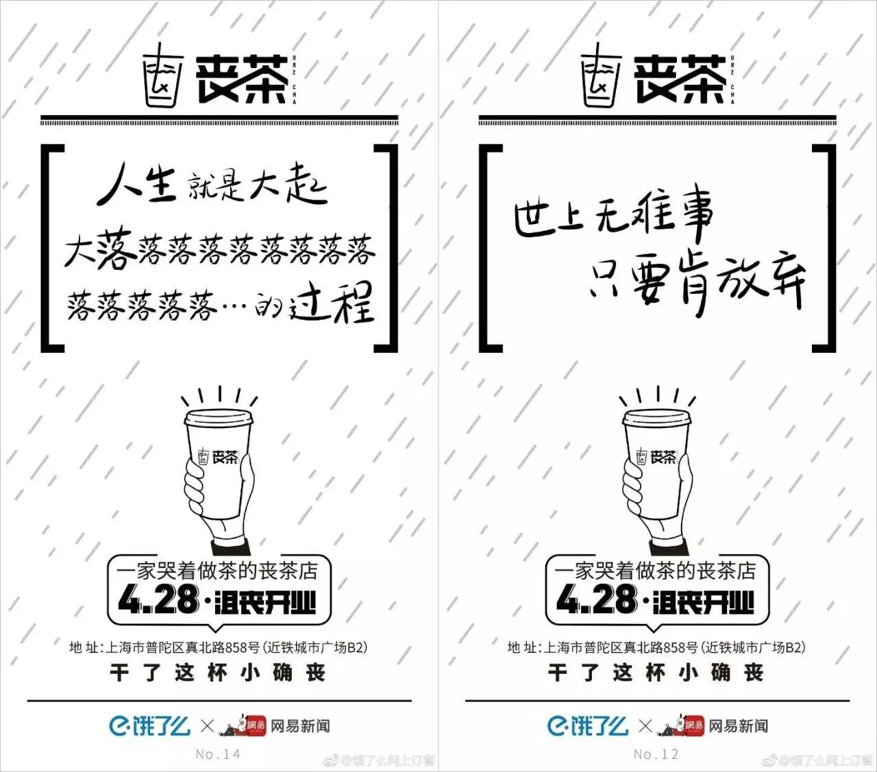 饿了么的传播合作伙伴网易新闻也表达了类似观点:“我们不觉得丧文化是负面消极的,它是90后年轻人愿意直面问题、表达情绪的体现。这次的丧茶我们最后落到‘干了这杯小确丧,丧着活下去’,是说面对问题时调侃几句然后积极地解决。”
