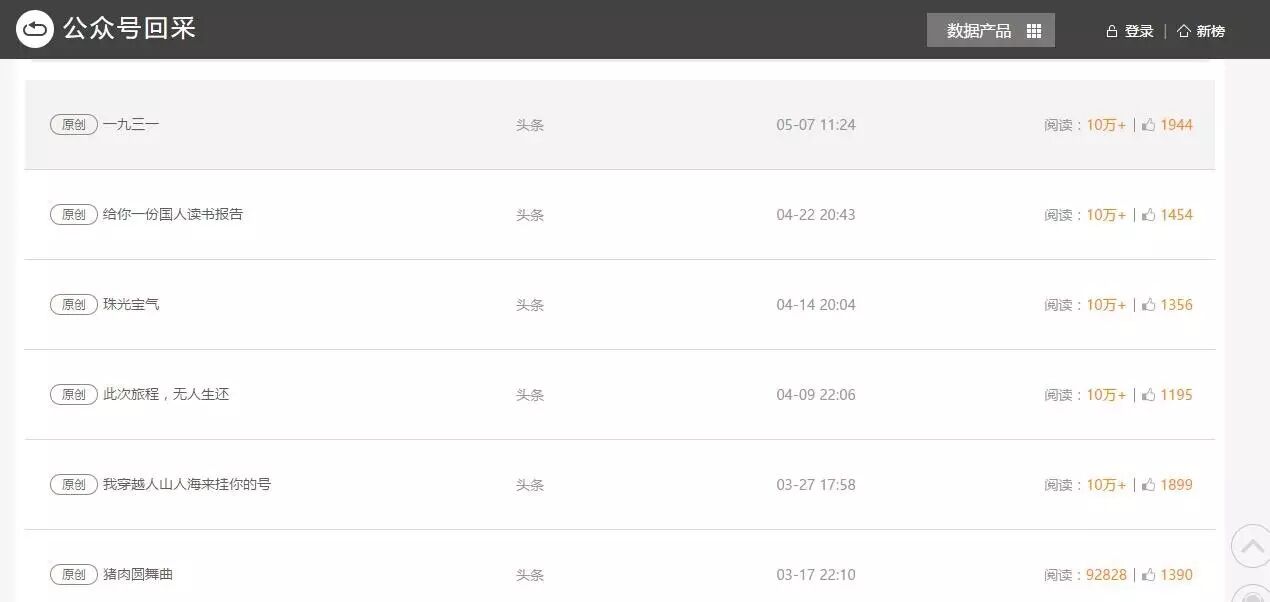 新榜公众号回采功能显示的“局部气候调查组”往期数据