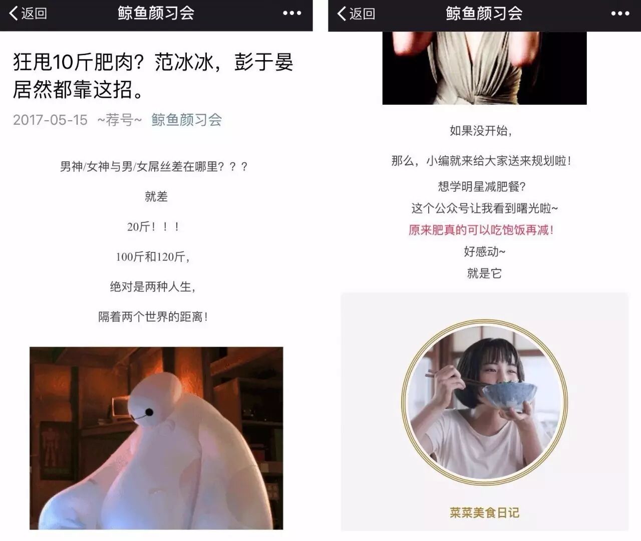 另一个很关键的点在于,互推文案要做得足够细致。有些公号会把一篇文案翻来覆去用很多次,但“菜菜美食日记”会根据不同公号的特性来调整,基本的文案至少有20篇,再根据对方的类别,结合热点来重拟标题和开头。比如跟时尚号互推,就会做成怎么吃能更瘦。