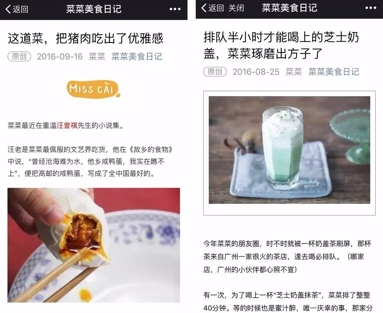 菜菜也爱做地方特色菜,因为看到汪曾祺书里对家乡小食蒲包肉的一小段描述很诱人,于是托层层关系,特意要来了菜谱。对美食深入骨髓的热爱,才有了菜菜美食日记如今的快跑式发展。邱啸说,“因为越专注,你越有机会脱颖而出。”