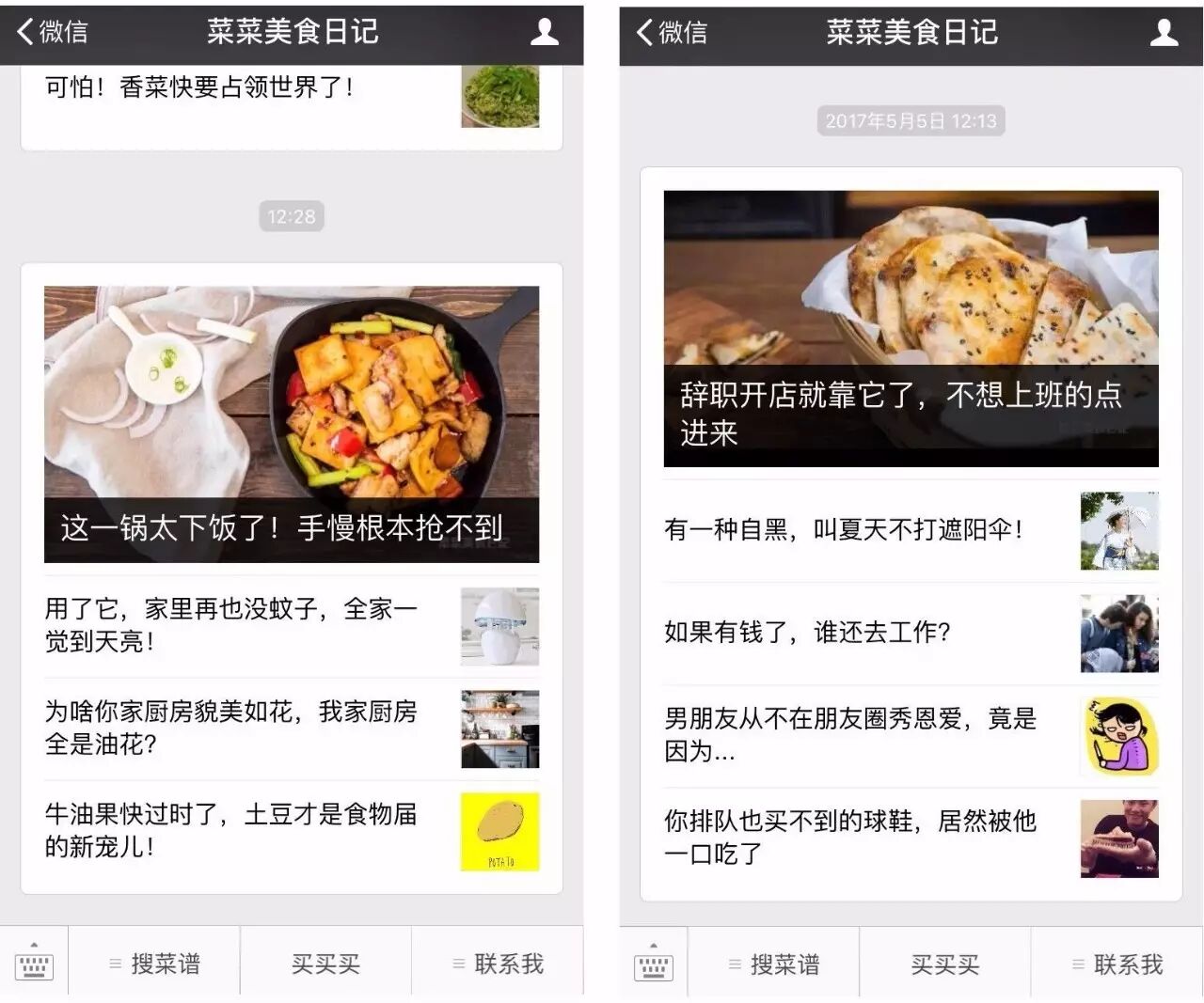 “以前看过一篇文章介绍某个号,说一卖货就涨粉,其实我们也是的。” 现在用户们已经非常习惯“菜菜美食日记”每天的二条推送商品,“他们常说,‘恨’死我们了,因为每次推荐的商品都忍不住剁手剁手,快连脚都剁没了。”