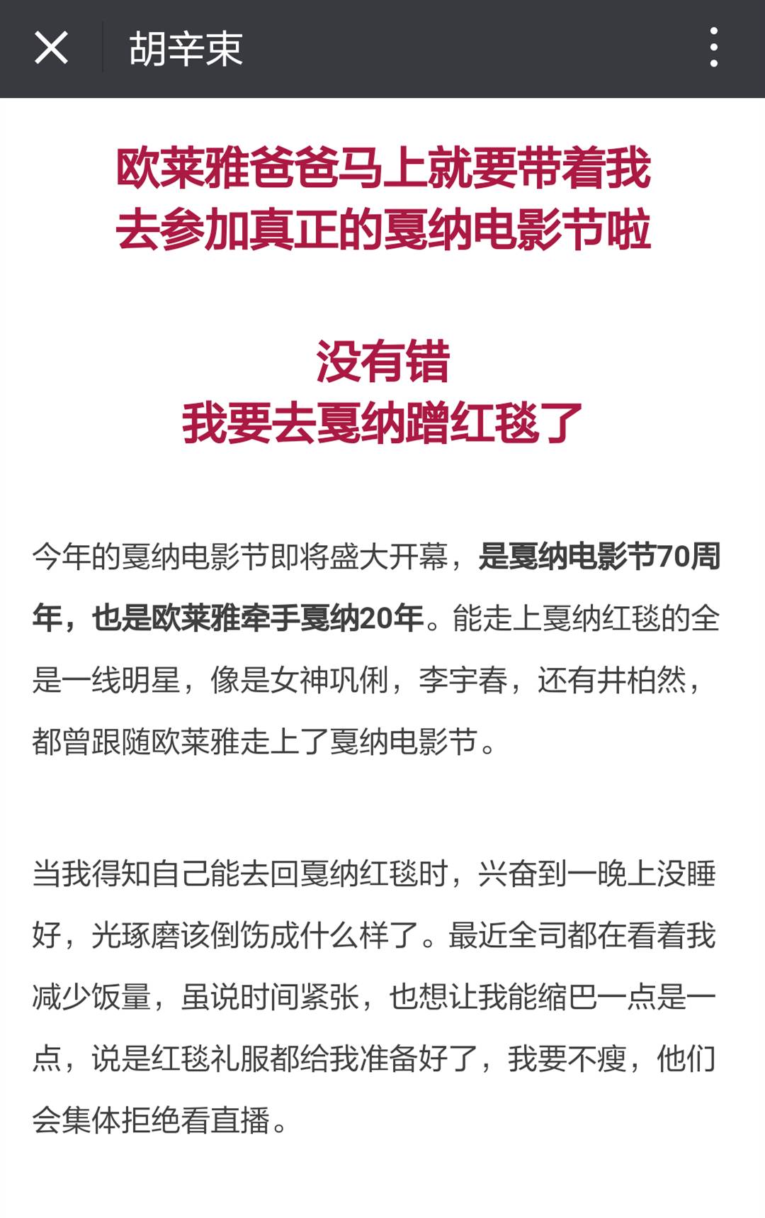 也许你会感叹命运的不公,岁月对有些人从来不是杀猪刀。就比如,胡辛束从曾经那个年画娃娃,出落成了戛纳电影节上的广告小公举。