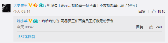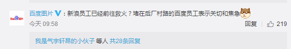 而在该微博下方的评论区,@百度图片 @网易汽车 纷纷现身表示关心,更有网友调侃称:“其实腾讯和新浪互相深爱着对方,嘴上不说,但身体却是诚实的”。
