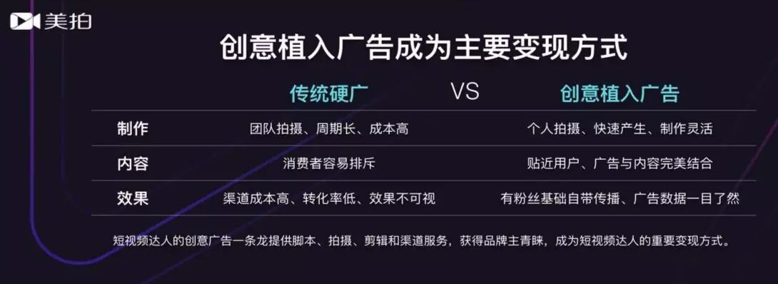 关于变现,据《报告》显示,短视频达人变现的趋势为:1.创意植入广告;2.内容与电商结合;3.创立自主品牌。其中,创意植入广告是主要变现方式。