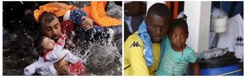 另一个例子是在避难所的羊肠小道上那些怀抱孩子的父亲,这篇发布在《赫芬顿邮报》的图文,收获了9000次分享。照片中,父亲们的眼神就像在现场为你讲述一个个动人故事。
