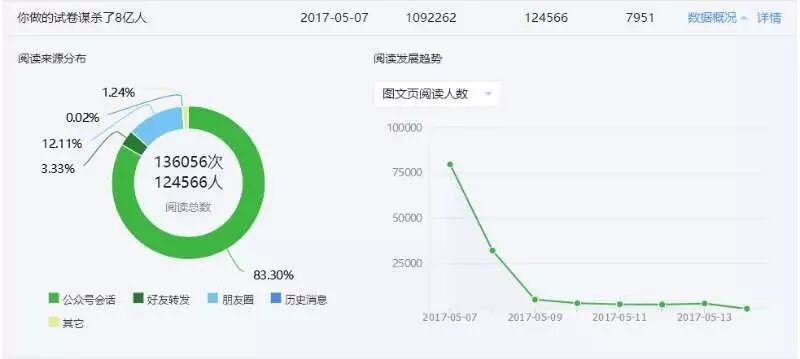 还有个有趣的现象,“作业小互”的爆文和其它号不同,不是靠转发带来的阅读,“我们有篇文章10000多转发,但阅读数和其它文章差不多,我们很多头条图文都10w+,但超过30w+的阅读基本没有”小互解释,主要是因为00后学生的微信好友很少,基本不到30个。