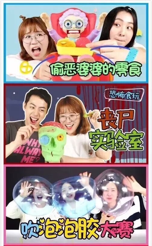 如同大雄总能在哆啦A梦的魔法口袋发现各种奇异工具,小朋友们也总能在《小伶玩具》视频节目中了解类型各异的玩具,有些甚至让人闻所未闻,例如:超爆笑翻斗猴子双人玩具游戏,恐怖食玩—丧尸实验室,吹泡泡胶大赛(作为8090后的你听过吗?)。