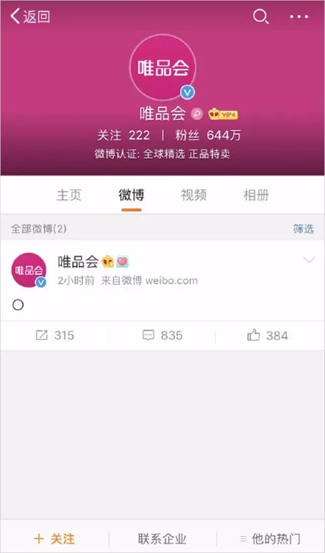 况且,姑且说这样做“跪舔”了90后小主们的心意,那这会儿正在添加购物车的80后们作何感想?再过5年就要大学毕业的00后们就喜欢这样的套路?10后们看到唯品会的第一条微博就是一个“O”字?