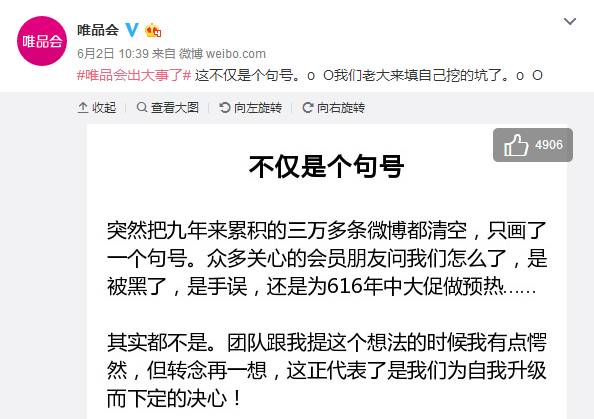唯品会清空微博:App迭代要配块橡皮?