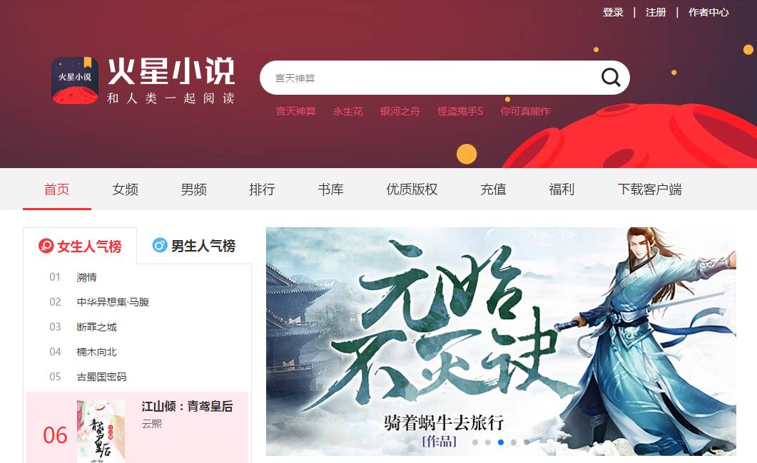 “火星小说”是一款小说阅读产品,类似PC时代的起点中文网,用户可付费阅读网络小说。