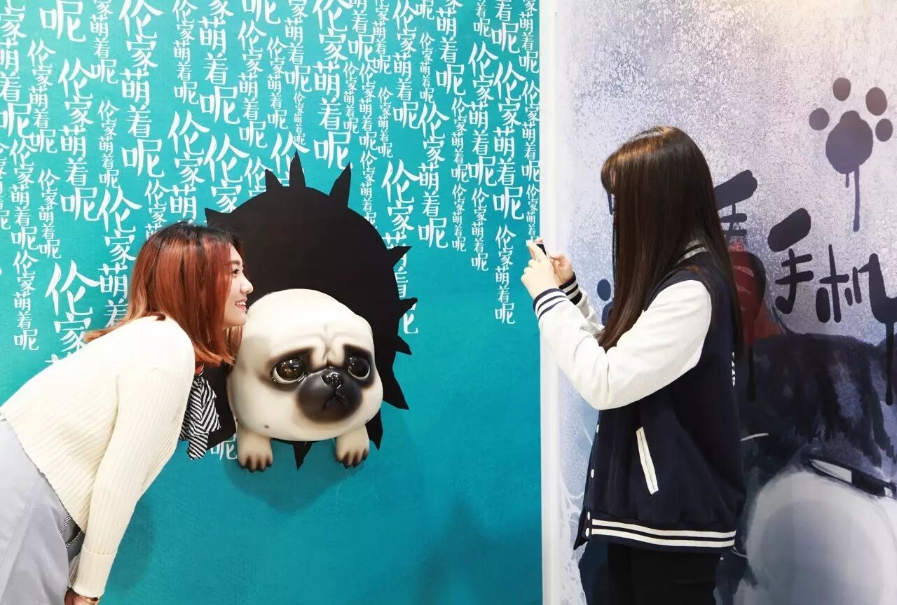 “吾皇就是贱萌贱萌的感觉,巴扎黑就特别乖巧。我是和我妈一起去的,拍了很多照片,还买了周边。现场都被设置成很适合拍照的场景,还有小道具。”一位去现场的姑娘向榜妹说道,“我把照片发到朋友圈里,还有朋友来问是在哪,然后不久就看到她也晒图了,hhhhhh。”