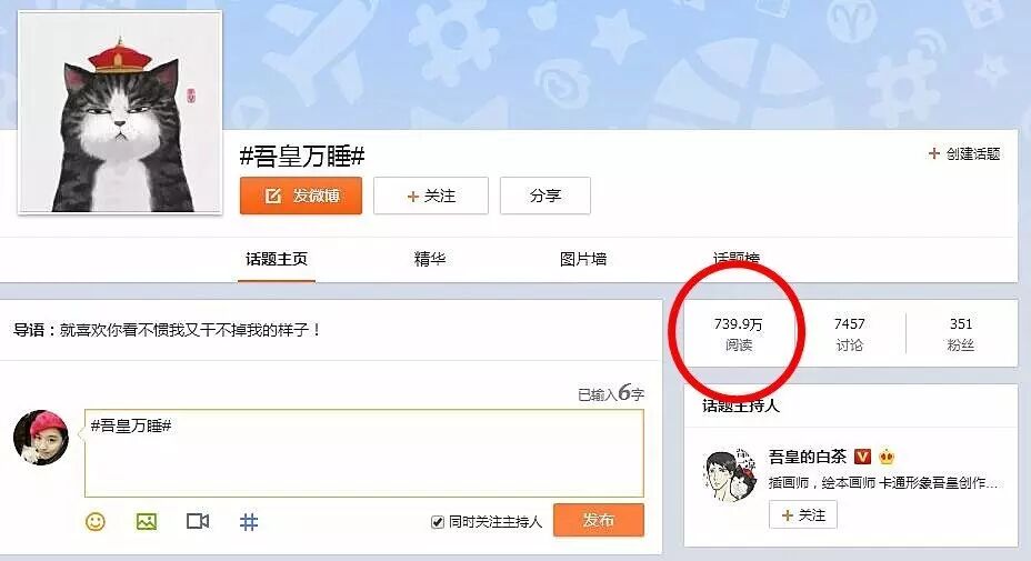 在微博#吾皇万睡#这个话题下,如今已拥有近800万阅读量。