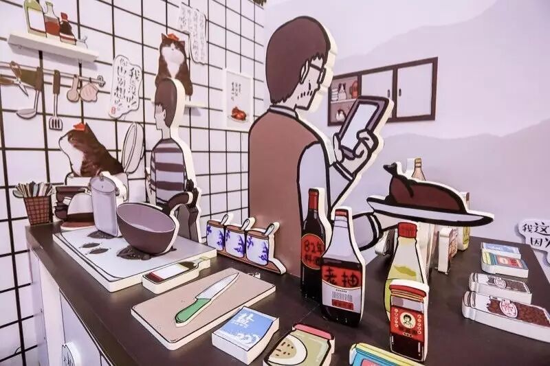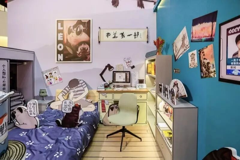 “因为漫画是比较琐碎的,我们在线下展览中需要抓取漫画的核心场景感,进行再创造。因为漫画以日常生活为主,所以我们最后定的场景是少年的卧室、厨房,还有和吾皇的互动区。”