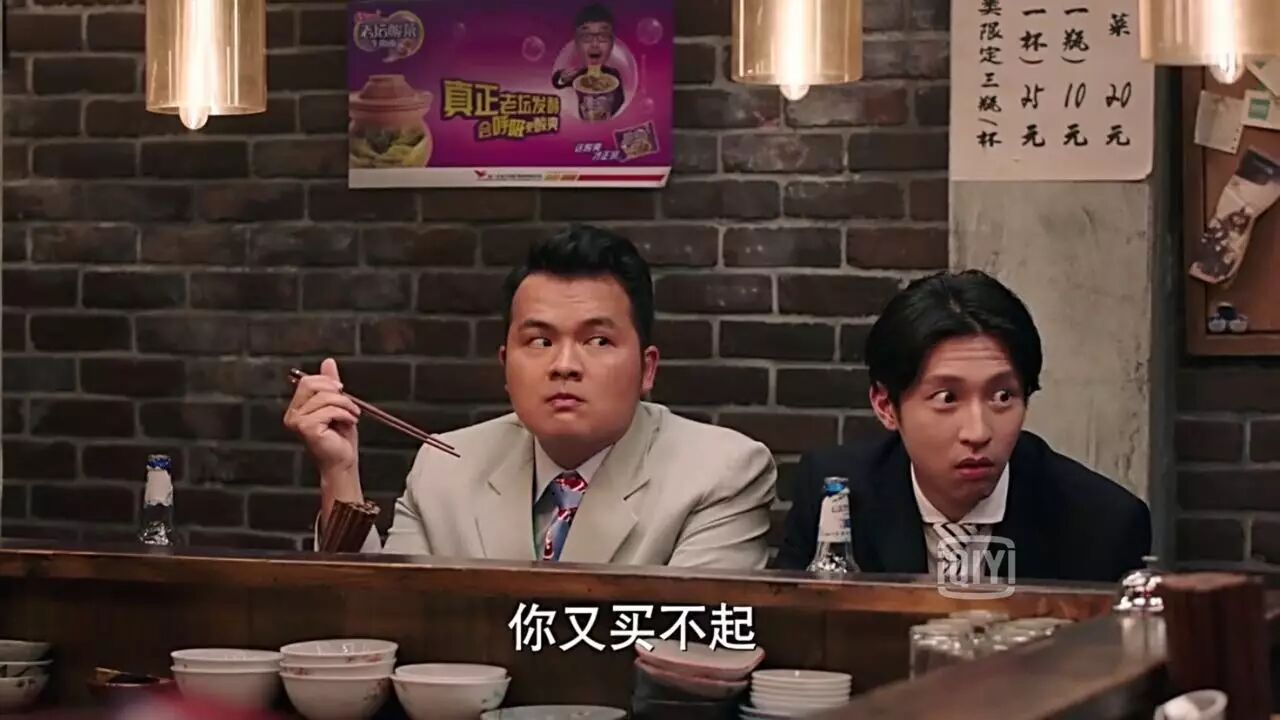 第一集第13分钟,统一方便面(记住是老坛酸菜口味哦!)作为墙纸在剧中第二次出镜。此时,老板正在对剧中人物做介绍。
