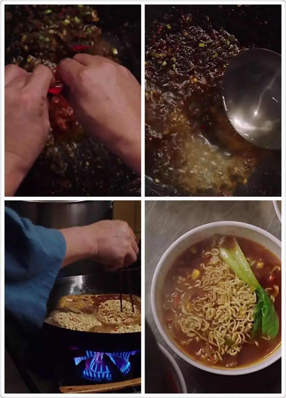 随后,老板开始深度演绎起了统一方便面的做法,从拆包装,到拆调料包,烧水煮面的整个过程做一一解析。
