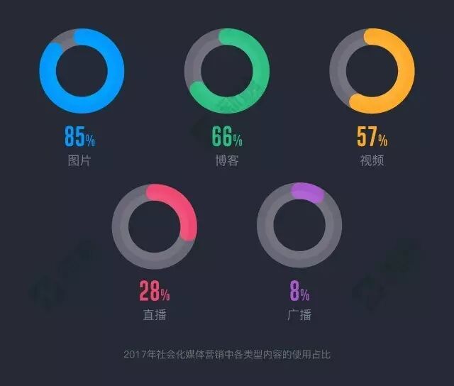 同样,社交媒体 Examiner 在2017年社会化媒体营销行业报告调查发现,有85%的人使用视觉内容来提升销售转化,高于2016年的74%。报告也表明,41%的被调查者说,视觉内容是最重要的内容类型,击败了博客夺取榜首位置。
