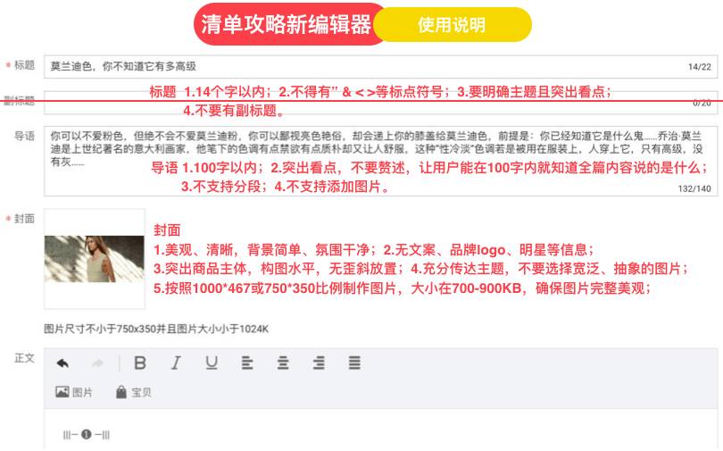 以内容电商导购为主,在淘宝达人的最新内容制作要求中,对不同类目的配图就有详细规范。