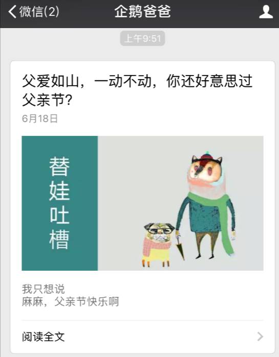 谈及爸爸号和妈妈号的区别,他表示“爸爸号偏理性,妈妈号偏感性”:妈妈号基本都是以情感共鸣为出发点,所以传播量会比爸爸号强,像企鹅爸爸这样谈的都是问题,解决问题,偏理工男思维,所以传播属性不强,但实用性强。