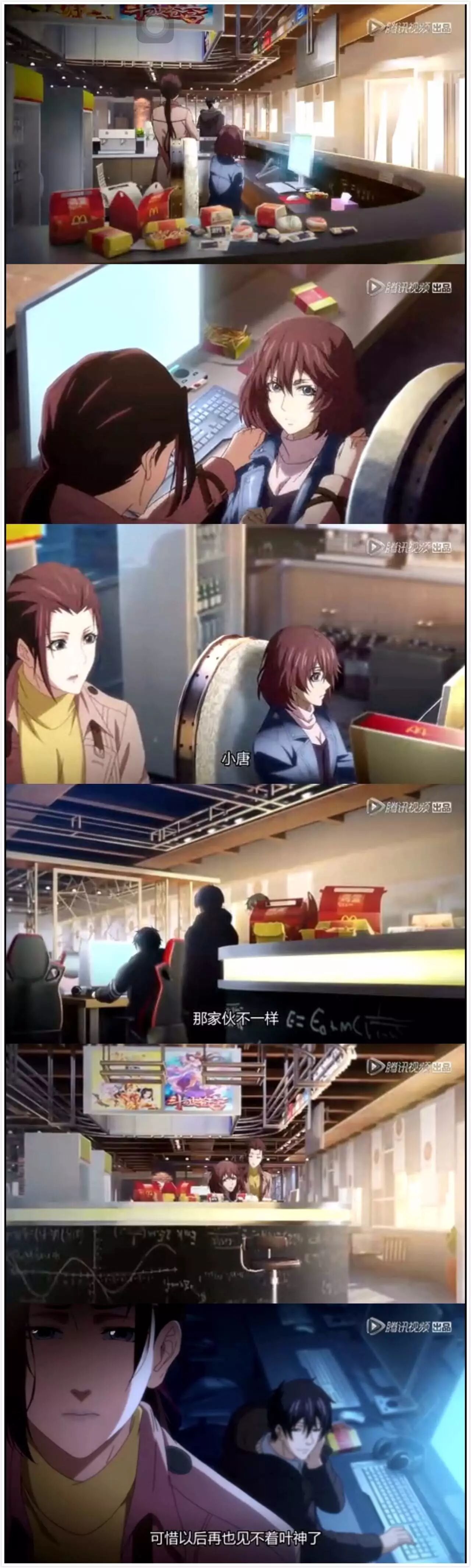 第三个主要桥段主要围绕叶修的网管身份。叶修一伙在游戏中激战正当时,网吧有几个人呼叫网管服务,服务内容就是让叶修代买一份麦当劳“那么大圆筒”。叶修的表现也是比较给力啦,直接转身看看背后的背景广告板,念叨了一句“看着不错”。