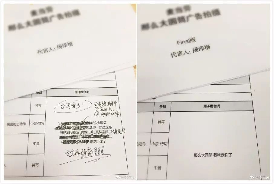 上文提到的周泽楷代言可不仅仅是剧情需要。周泽楷代言“那么大圆筒”的广告短片已经在不少平台作为“正经”广告播出。