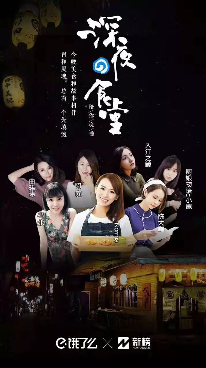 此外,新榜也聚合7位KOL的能量参与其中,他们是美食和情感领域的KOL:Norma、陈大咖、小北、阿素、厨娘物语c小鹿、入江之鲸、曲玮玮。在若干个深夜里,她们的文章通过微信公众号抚慰了城市里的无数灵魂,这晚,她们现身“深夜の食堂”,为身边的食客煮面、聊家长里短。