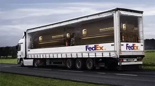 联邦快递直接在车厢外张贴了广告。车辆行驶的时候,广告上的两辆车也仿佛在行驶,real吸睛!