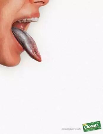 口香糖广告:消灭口气。舌头和死鱼一样臭的话真是太可怕了!