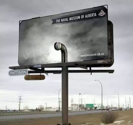 对行驶在高速公路上的司机们来说,广告牌是无聊时的消遣必备。这则海军博物馆的广告中的潜望镜,让人联想到潜艇,难免也想去实地看看。