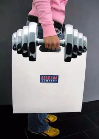 这个健身公司的哑铃状纸袋回头率一定很高!