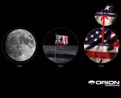 望远镜清晰到连插在月球上的美国国旗上的“中国制造”字样都看得见!