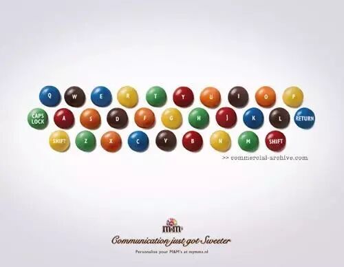 M&M:交流变得更甜蜜。摆成键盘状的M&M看起来是不是很可口?