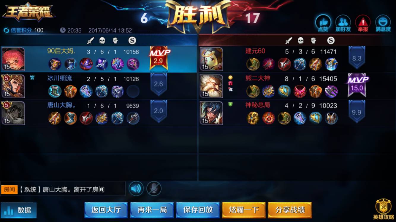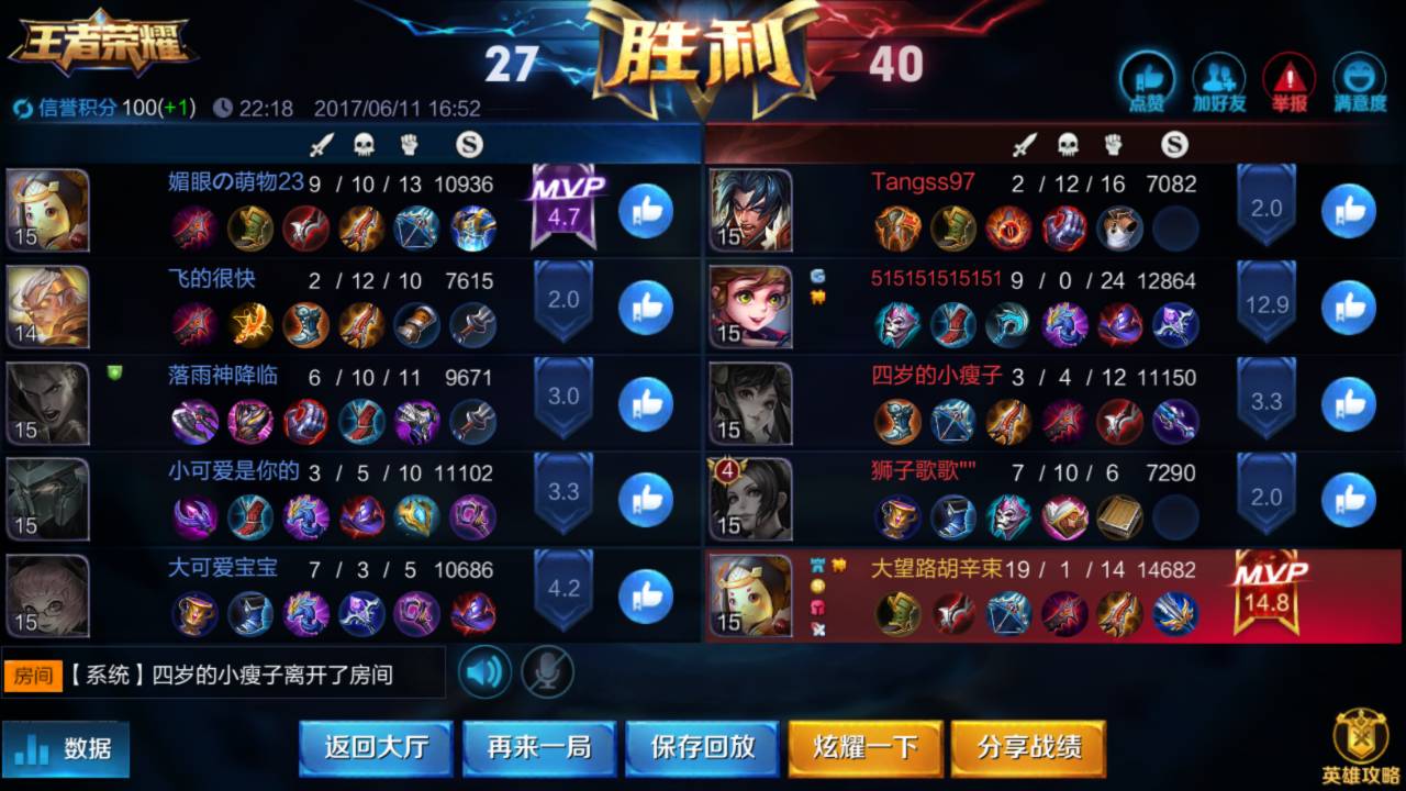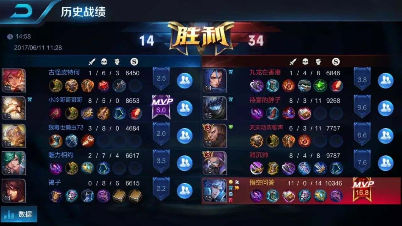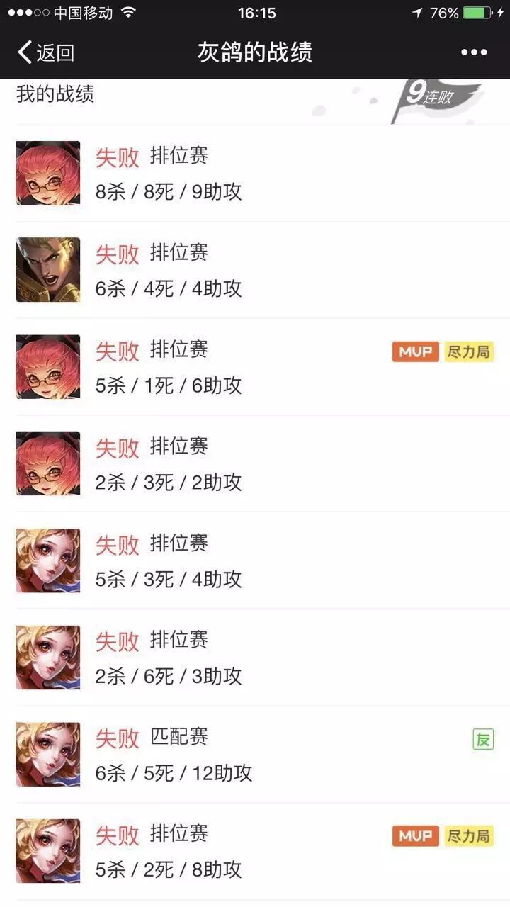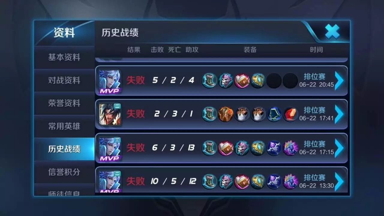 最近战绩比较背,经常连着拿败方MVP,大师说很郁闷