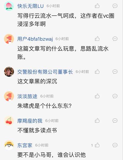 遗憾的是,在天天快报上,这篇文章发布7小时后评论依然为零。差不多同样的时长,一点资讯为代表的“一点号”上,这篇《谁人不识朱啸虎》则留下了20条评论: