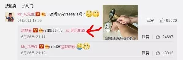 明星们也纷纷推波助澜。6月26日,赵丽颖在微博上晒出短发丸子头自拍照,庆祝粉丝破五千万,并配上了freestyle表情包。作为“freestyle”创始人的吴亦凡赶来评论道:“请问你有freestyle吗?”颖宝回应一张图:“你再敢多说一句试试”,随后吴亦凡无奈摊手,只好闭嘴。