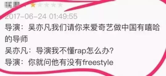 因而,一句原本被吴亦凡用来考核选手的“你有freestyle吗?”,在微博、朋友圈、论坛及明星、草根们的盛情参与下,最终成为了一句全民皆知的金句!