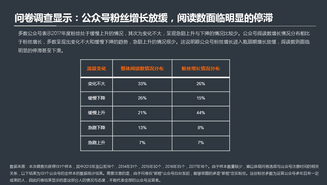 除了打开率的下滑,还有粉丝的增长放缓乃至陷入负增长。在这些数据背后,带来的是更深层次的行业生态的改变和疑问:增长越来越难,变现越来越难,出头越来越难,原来的涨粉、爆文套路似乎都失灵了。