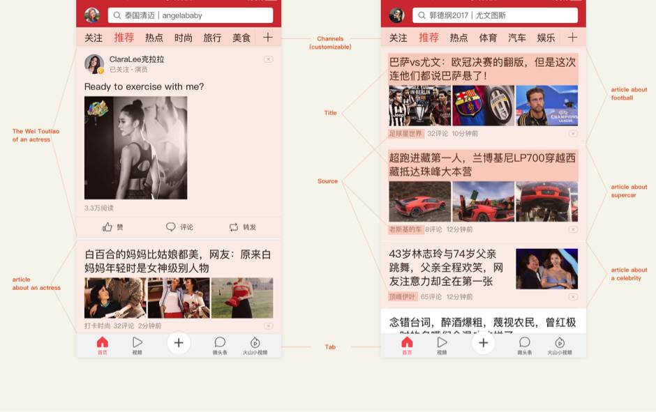 在其早期,“软新闻”是今日头条主要的交互驱动力之一——如名人八卦、流行文化和生活方式等领域的文章。这并非偶然。与通过知名的政府控制的新闻机构发布的官方新闻所不同,软性内容在互联网上通过数量众多的网站发布。总之,没有一个集中的地方可以获得这些内容:搜寻这些消息的用户需要投入大量时间访问不同的站点,并且也不能保证就可以获得他们最感兴趣的信息。