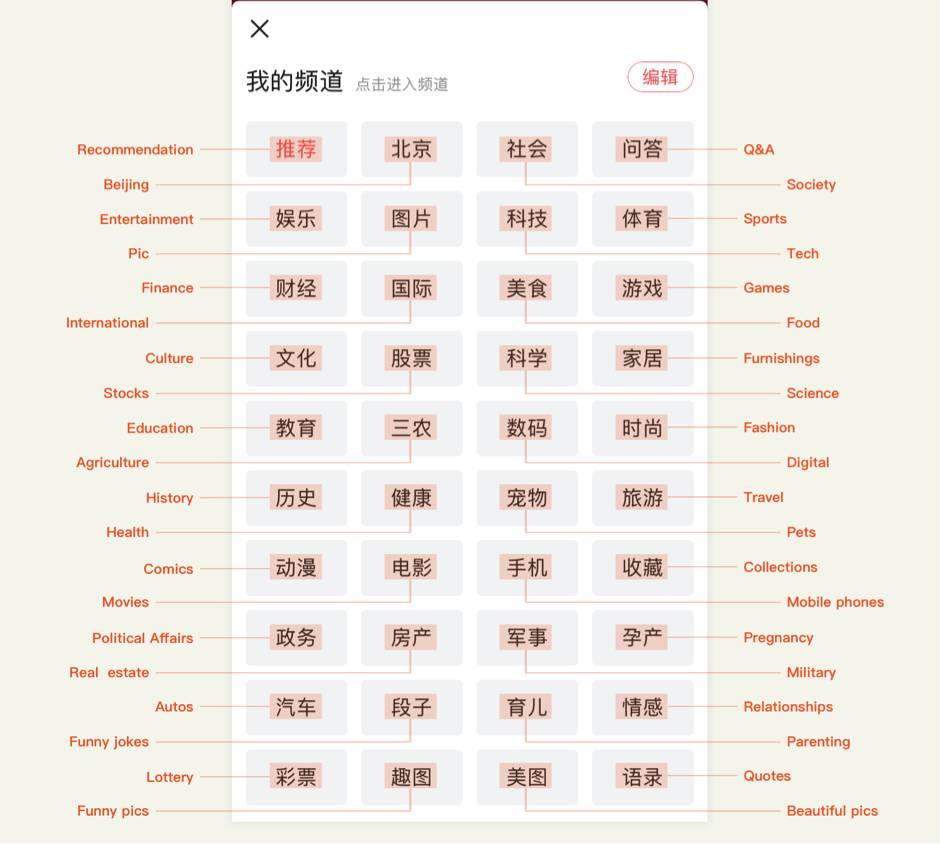 今日头条的名字(中文意思是当日重大新闻)及其应用程序的图标对用户而言非常具有吸引力,从而推动用户数量迅速增长。这也是首款将各类新闻文章聚合在一处的APP。从发布初期开始,今日头条就开始跟踪每个用户的信息——他们的点击、滑动、在每篇文章上花费的时间和地理位置等等,从而为推荐引擎提供支持,这点笔者将在本文后面进行讨论。