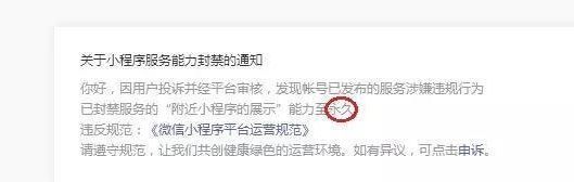 通过上面的封禁通知,我们知道这是被投诉的结果,而被投诉的原因是小程序发布的服务违规了。近期,打开“附近的小程序”,长按“小程序”,就会出现“地点报错”的提示,用户打开后便能投诉该小程序出现在错误的位置。并且,只要位置违规,就算没被投诉,系统也会处理。