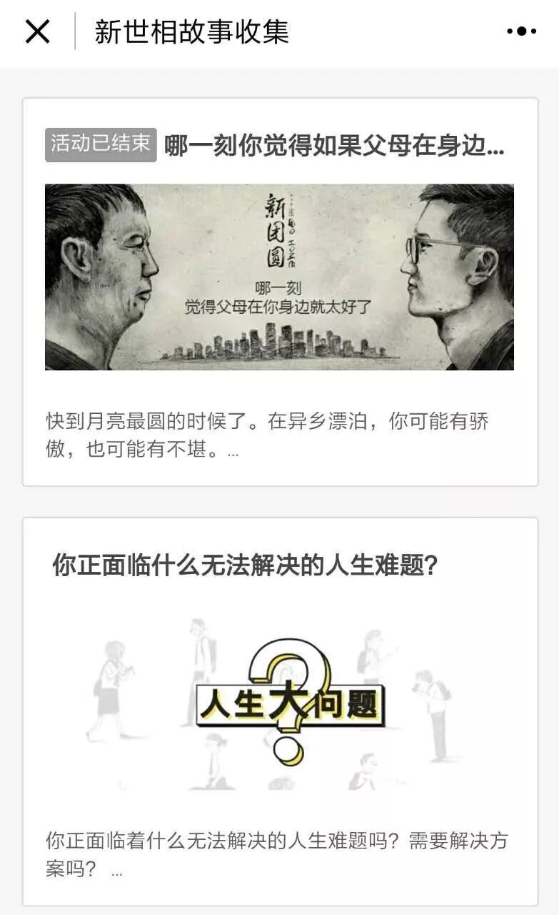不少自媒体大号,都曾借小程序搜集故事,推送UGC内容。比如公众号“新世相”曾推出小程序“新世相故事收集”,征集过有关“亲情”和“人生难题”的故事。为了更方便地收集故事,它还专门做了一个“UGC内容检索系统”,充分利用微信公众号后台留言和评论。