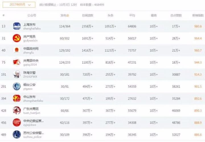 随着自媒体的快速发展,政务新媒体也在更新迭代,浮现出许多用户基数庞大、黏性良好的政务号。“上海发布”就是其中的佼佼者,在新榜发布的全国政务微信9月榜中,“上海发布”连续第4个月居于榜首,在各类微信号总排名中名列第13。