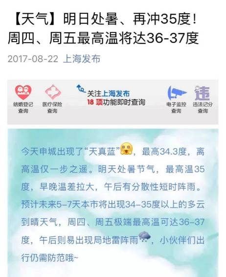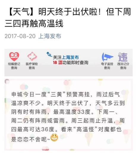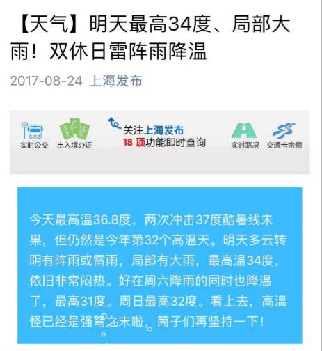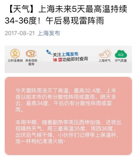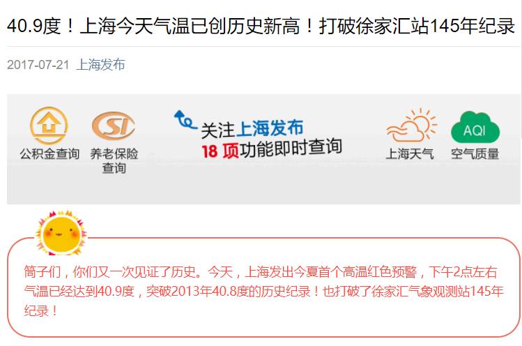 就在此时,人民广场附近的一个格子间里,“上海发布”的小编早已摩拳擦掌,以比升温还快的速度编好微信并推送出去。
