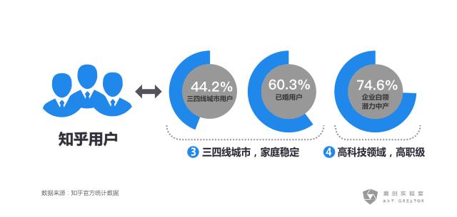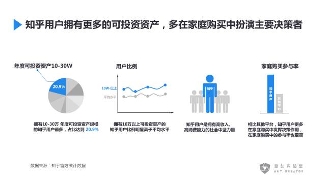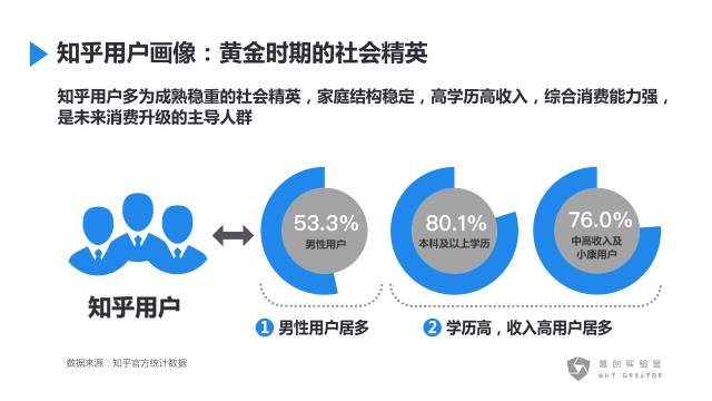 知乎用户多为成熟稳重的社会精英,家庭结构稳定,高学历高收入,综合消费能力强,是未来消费升级的主导人群