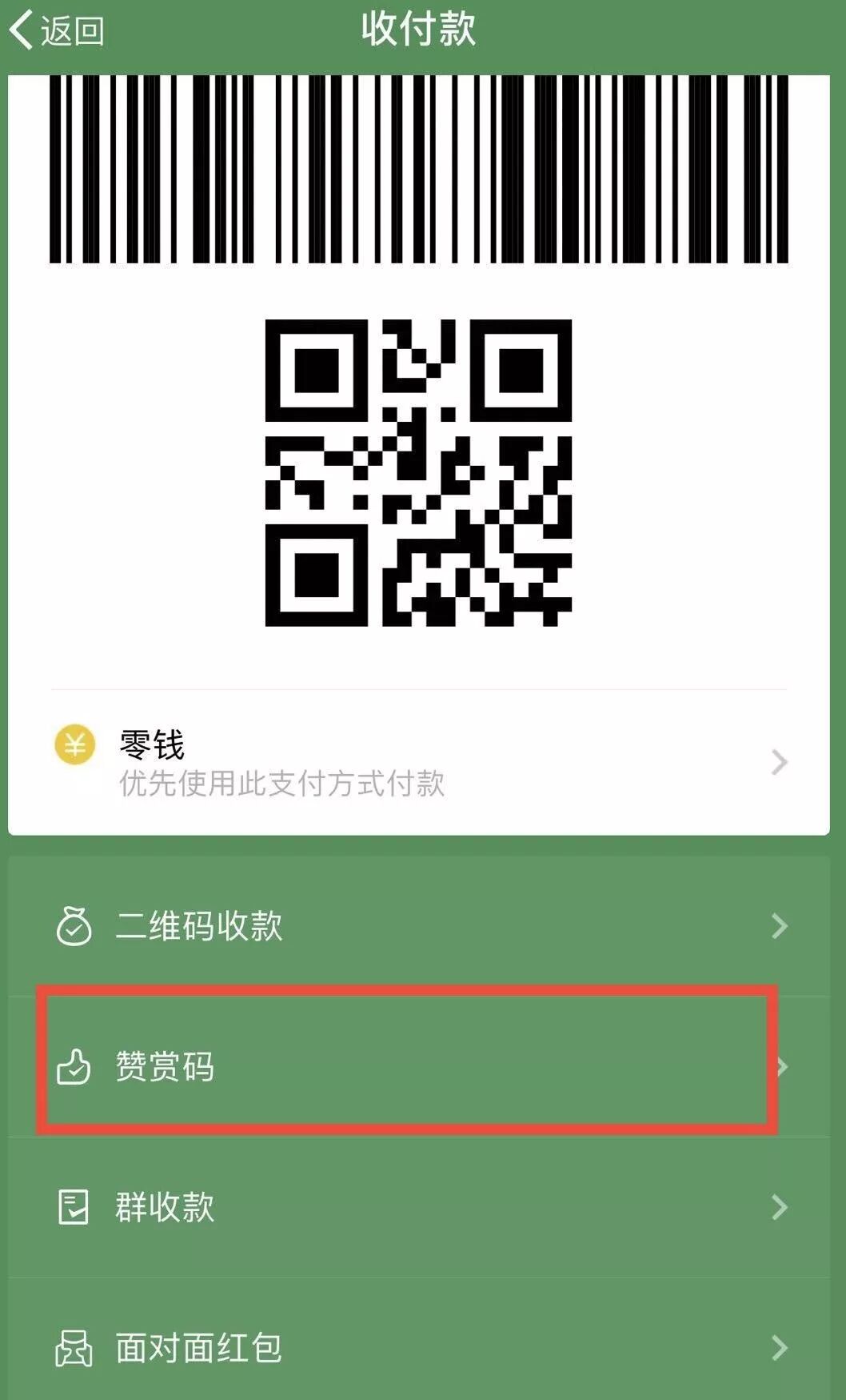 在最新的微信 iOS 版本中,打开钱包-收付款-赞赏码,就会看到新增的赞赏码生成功能。