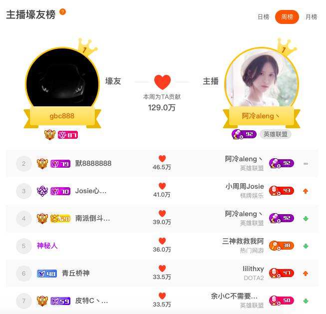 (斗鱼直播打赏排行榜)