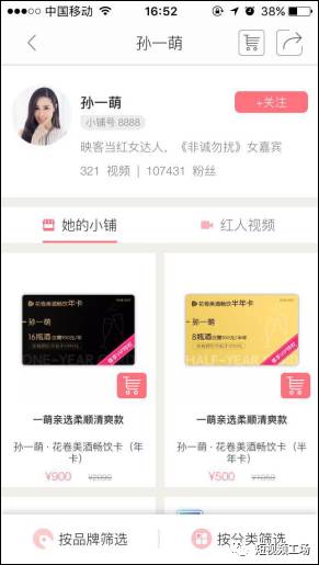 值得关注的是,“花卷”上的红人拥有电商小铺,小铺里的商品都有该红人为其录制的短视频。
