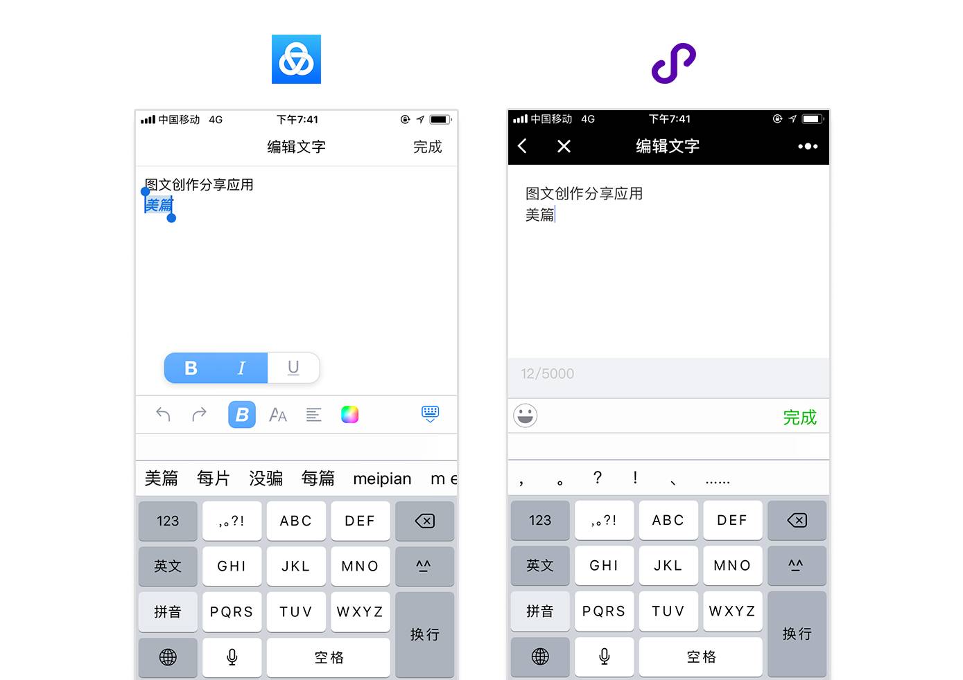 美篇:受限于小程序sdk和小程序的技术框架,小程序没有富文本编辑功能,模板的选择也没有App那么丰富。