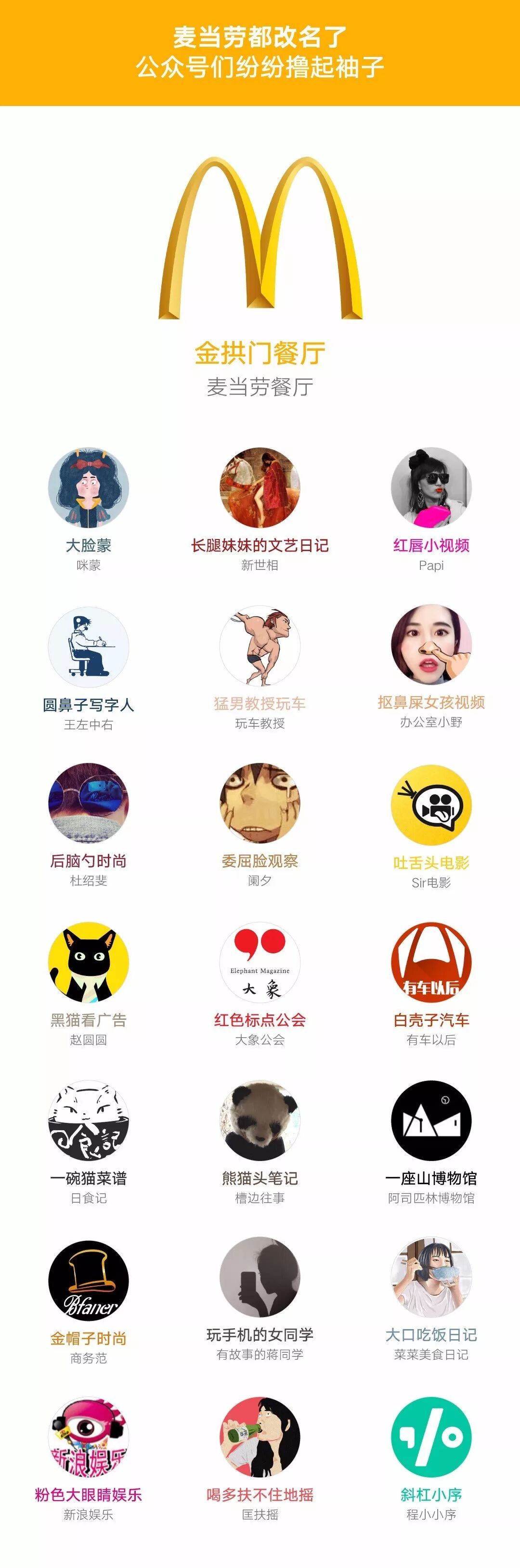 不要问我金拱门是什么……因为说时迟那时快,放眼望去公众号已经纷纷撸起了袖子!以下是我们随机找到的一些公众号。