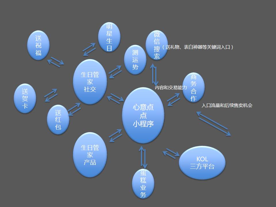 用一个词来概括就是“万向链接”。我们采取全场景的布局策略,以生日管家和心意点点送礼助手为中心扩散,为用户解决重要节日、纪念日的社交和消费需求。