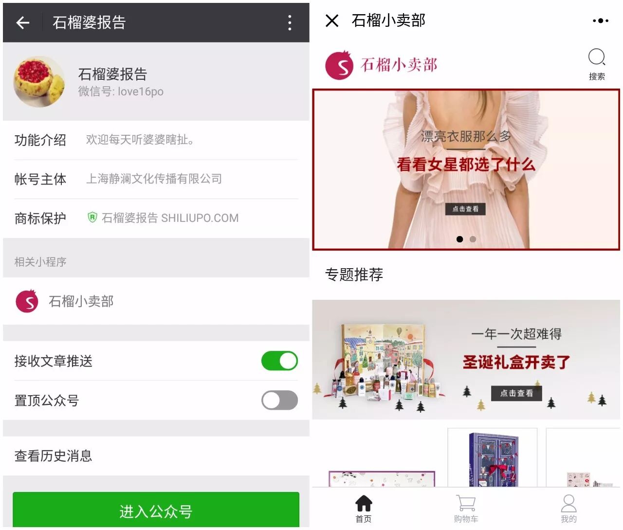 昨晚7点左右,“石榴婆报告”的关注者们收到一条“公众号关联小程序通知”,随后,8点左右“石榴婆报告”推送了一篇《全世界最厉害的小卖部》,正式宣布:婆婆开了个线上商店。